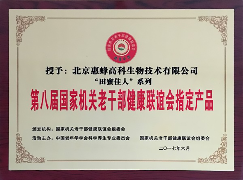 北京惠蜂高科生物技術(shù)有限公司“田蜜佳人”系列產(chǎn)品作為國家機(jī)關(guān)老干部健康聯(lián)誼會長期指定產(chǎn)品頗受各級領(lǐng)導(dǎo)人青睞。