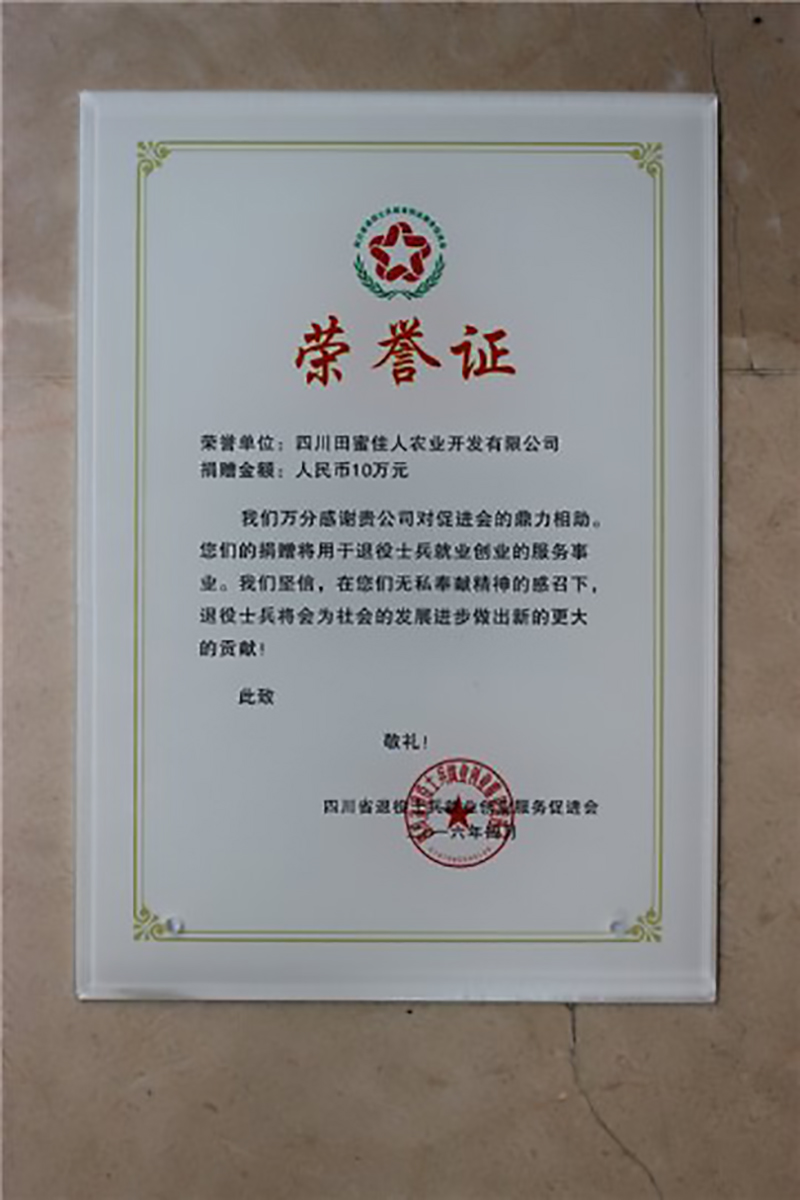 四川田蜜佳人農(nóng)業(yè)開發(fā)有限公司向促進會進行了捐贈