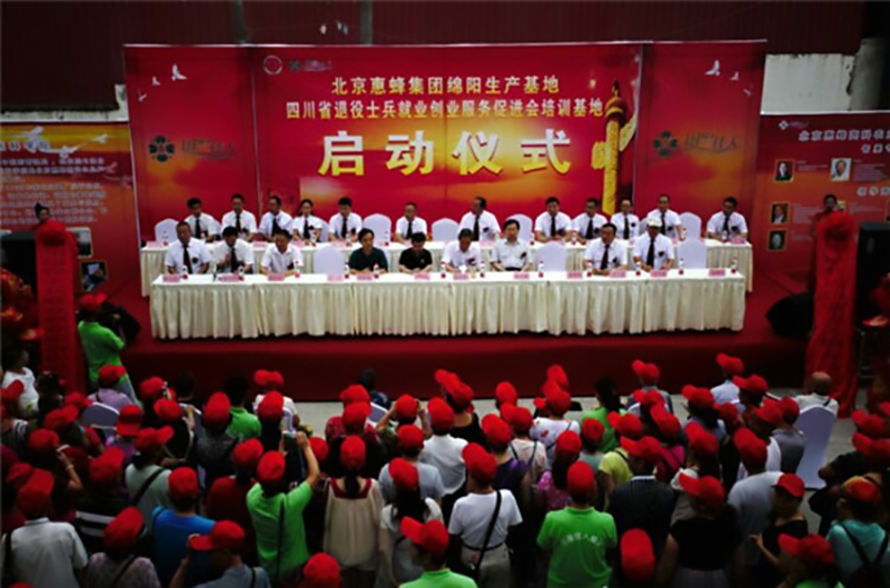 陳世俊中將在儀式上作重要講話。他說:倪仔鑫董事長(zhǎng)從戎是個(gè)好兵;從業(yè)是個(gè)優(yōu)秀企業(yè)家,他領(lǐng)導(dǎo)的北京惠蜂集團(tuán)獲得了“世界健康養(yǎng)生領(lǐng)軍企業(yè)”的殊榮。他懷著一顆感恩的赤子之心,為父老鄉(xiāng)親們提供先進(jìn)的健康生活方式和優(yōu)質(zhì)的健康產(chǎn)品。今天,綿陽(yáng)生產(chǎn)基地建成投產(chǎn),不僅為川內(nèi),而且為整個(gè)西南乃至全國(guó)老百姓的健康,提供了更便捷、更低廉、更直接的服務(wù)。同時(shí),也為退役軍人的就業(yè)創(chuàng)業(yè)搭建了平臺(tái),提供了培訓(xùn)場(chǎng)所。這是利國(guó)利民利兵的大好事,也是惠蜂人企業(yè)價(jià)值觀的真實(shí)體現(xiàn)。習(xí)近平同志講“沒有全民的健康,就沒有全面的小康。”“建設(shè)健康中國(guó)”寫進(jìn)了《政府工作報(bào)告》,列入了我國(guó)“十三五發(fā)展規(guī)劃”。我堅(jiān)信,惠蜂人完全可以擔(dān)當(dāng)起這個(gè)時(shí)代的重任。只要我們始終堅(jiān)持“不忘初心,繼續(xù)前進(jìn)”的發(fā)展理念,就一定會(huì)為四川的經(jīng)濟(jì)發(fā)展,人民的健康生活和民族復(fù)興的“中國(guó)夢(mèng)”做出應(yīng)有的貢獻(xiàn)。