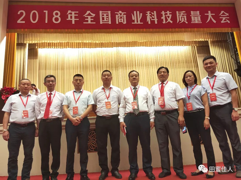 倪仔鑫董事長(左一)代表北京惠蜂領(lǐng)取“全國商業(yè)質(zhì)量獎”
